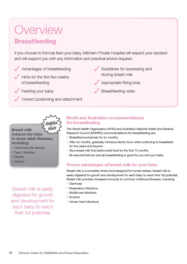 If you choose to formula feed your baby, Mitcham Private Hospital will respect your decision